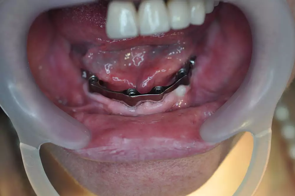 Продолжительность всех манипуляций на нижней челюсти составило 3 месяца. На время работ устанавливался временный протез из Акрила.